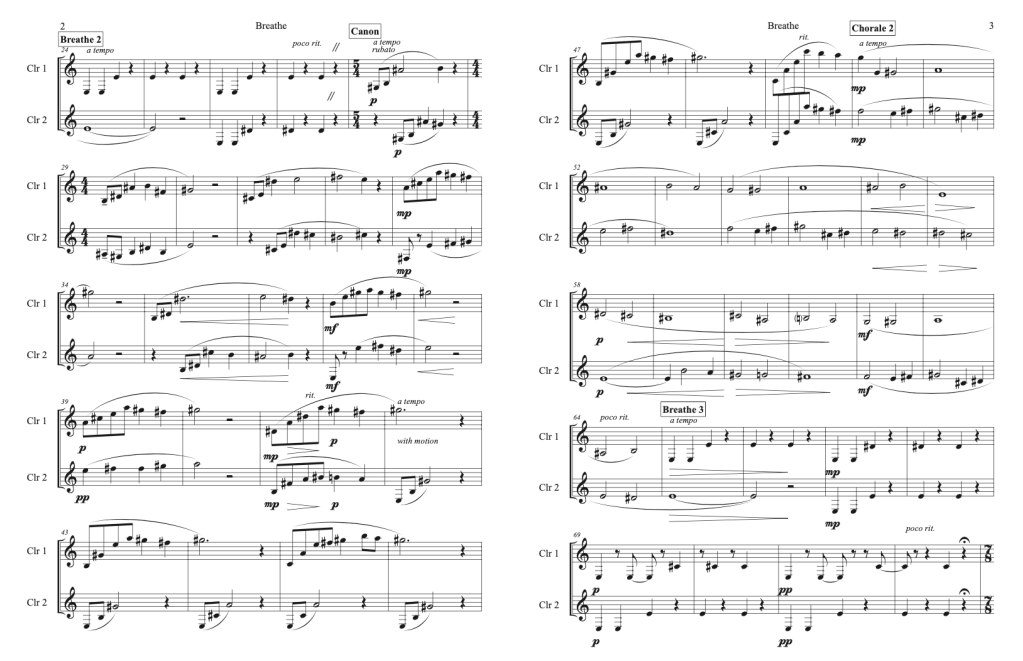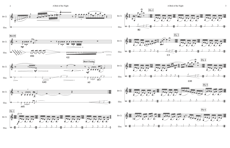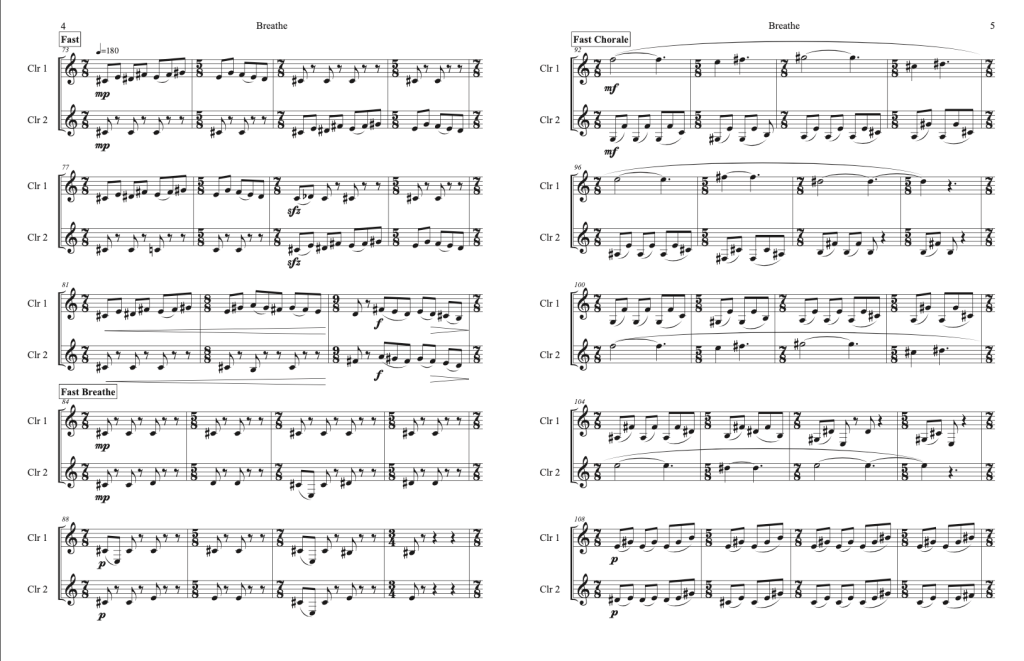 An epic piece for one clarinetist playing B-flat and bass clarinet, and electronics with heavy influence from electronic dance music.